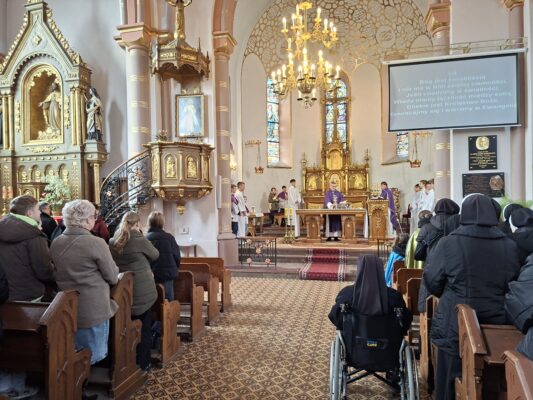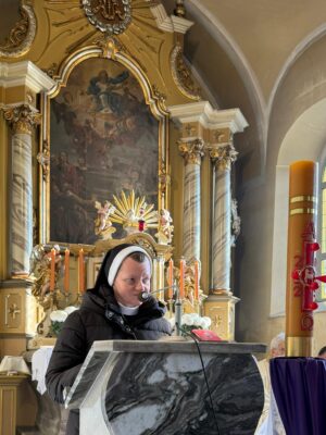 Dziś, 22 lutego 2026 roku siostry michalitki odprawiające rekolekcje oraz siostry ze wspólnoty miejsteckiej uczestniczyły w Eucharystii sprawowanej w kościele parafialnym.