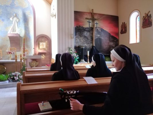 W dniach 22.04- 24.04. 2022r. w Białobrzegach, w domu rekolekcyjnym „Emaus”, odbyło się spotkanie formacyjne Młodych Sióstr Wieczystych. Tegoroczny zjazd wpisał się w wyjątkowe Święto Miłosierdzia Bożego i dlatego upływał pod hasłem „Przebite Serce Miłosierdzia”. Spotkanie prowadziła s. Mistrzyni Agnieszka Zych oraz w sobotę do południa swoją obecnością towarzyszył nam ks. Witold Gawlik z diecezji radomskiej. W trwającej jeszcze Oktawie Zmartwychwstania Pana Jezusa, Bóg pozwolił nam zatrzymać się przy Jego Słowie i na nowo odkrywać Jego obecność i miłość, którą objawia w prostych znakach naszej codzienności. Podczas konferencji ks. Witold ukazywał wielkość Bożego Miłosierdzia w historii Narodu Wybranego, w przypowieściach o Synu Marnotrawnym i Miłosiernym Samarytaninie, które przejawia się na pierwszym miejscu w tym, że Bóg jest „TYM KTÓRY JEST” oraz zawsze na nas czeka, by nas przygarnąć do Swojego Przebitego, pełnego Miłosierdzia Serca. W czasie głoszonego Słowa ksiądz dzielił się także osobistym spotkaniem z Jezusem, co mocno poruszyło nasze serca. W czasie zjazdu doświadczyłyśmy również radości, która wypływa z bycia we wspólnocie, z piękna otaczającej, budzącej się do życia przyrody. Szczególnym darem była dla nas kaplica pod wezwaniem Miłosierdzia Bożego, gdzie w Niedzielę mogłyśmy uczestniczyć w odpustowej Eucharystii. Wyrażamy wdzięczność za dar tego spotkania i w Miłosiernym Sercu Jezusa zanurzamy wszystkich, dzięki którym mogłyśmy odbyć nasze spotkanie formacyjne.