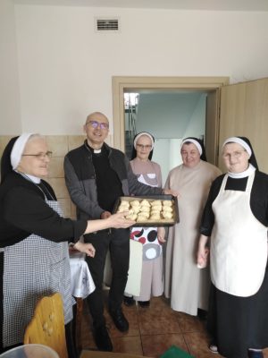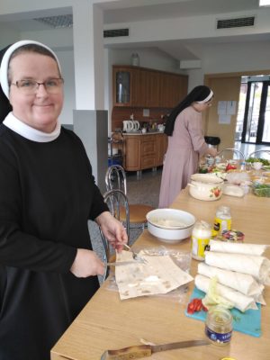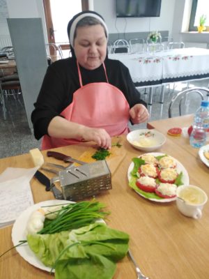 Zjazd Sióstr kucharek odbył się w tym roku w Poroninie od 30 kwietnia do 01 maja pod hasłem „Bóg moje największe SZCZĘŚCIE „. W piątek 30 kwietnia odbył się dzień skupienia, który prowadził ks. Proboszcz Artur Guminski. W swoich konferencjach starał się nam ukazać na czym polega szczęście siostry zakonnej i wielką wartość adoracji Najświętszego Sakramentu w naszym życiu. W drugi dzień na spotkanie kucharskie były zaproszone Panie kucharki z przedszkola z Poronina, które podzieliły się z nami swoją organizacją pracy oraz kuchnią podhalańską. Później miałyśmy czas przygotowania posiłków:zimnych przystawek i deserów,