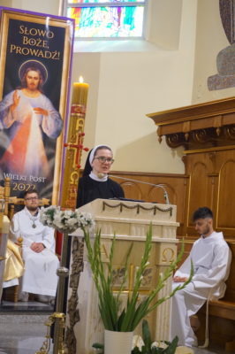 15 maja Siostry posługujące w Głogowie Małopolskim wraz z parafianami przeżywały w Sanktuarium Matki Bożej Głogowskiej Niedzielę z Matką Anną Kaworek. Przez cały dzień Czcigodna Służebnica Boża Matka Anna spoglądała ze swojego portretu umieszczonego na banerze na to miejsce, dokąd przed dziewięćdziesięciu laty przysłała swoje siostry do pracy wśród tutejszych dzieci i młodzieży. Bywała tu osobiście, wizytując założoną