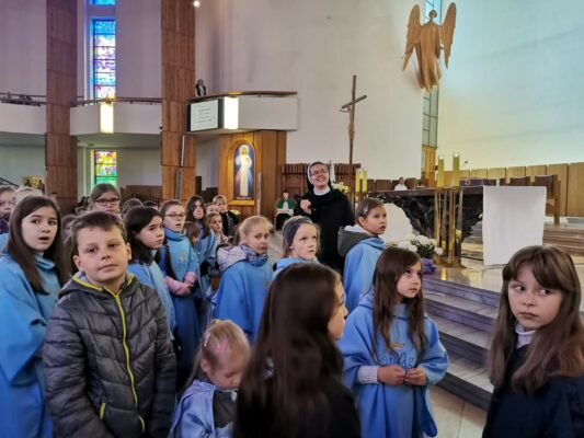 i powołania Matki Anny była Adoracja Najświętszego Sakramentu przygotowana i prowadzona przez siostry. Podczas Mszy świętej z udziałem dzieci, Siostra Przełożona Paulina Wojdyła opowiedziała najmłodszym parafianom o dzielnej, cichej bohaterce – Annie, która zostawiła nam ślady prowadzące do świętości.