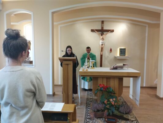 w którym trwałyśmy do sobotnich nieszporów. W sobotę rano dołączył do nas ks. Grzegorz Kosakowski CSMA, który wygłosił dla nas konferencję, posługiwał w sakramencie spowiedzi i sprawował Eucharystię. Do południa była też możliwość adoracji Najświętszego Sakramentu i skutacji Słowa Bożego. Wieczorem spotkałyśmy się na wspólnej, radosnej agapie. W niedzielny poranek razem odmówiłyśmy jutrznię i uczestniczyłyśmy we Mszy Świętej, której przewodniczył i Słowo wygłosił ks. Grzegorz. Dziękujemy Dobremu Bogu za ten czas bogaty