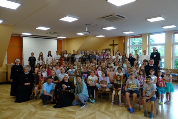 Część warsztatową poprowadzili Państwo Karolina i Dariusz Kosak. Była nauka śpiewu, gry na instrumentach oraz taniec. Na koniec tych godzin spędzonych na rozwijaniu talentów muzycznych można było podziwiać końcowy koncert, który był efektem wspólnej pracy. Po części warsztatowej popołudnia były czasem rekreacji. W ogrodzie Sióstr odbył się piknik, podczas którego były różne atrakcje i zabawy: dmuchańce, zabawy z chustą, malowanie na chuście, mini zawody sportowe i inne. Był też czas na wycieczkę do Rymanowa Zdroju i spacer po tym uroczym uzdrowiskowym mieście. Całość warsztatów muzycznych przeplatana była wspólną modlitwą oraz uczestnictwem w Eucharystii, podczas której scholanki i nasi scholiści mogli wychwalać Pana Boga pięknym śpiewem i grą na instrumentach zarówno w Sanktuarium bł. ks. Br. Markiewicza i św. Michała Archanioła jak i w Kaplicy Sióstr. Śpiew, jak przystało na schole, był słychać wszędzie. Nawet scena w Rymanowie Zdroju została opanowana przez dzieci i młodzież, skąd rozchodził się śpiew uwielbiający Pana na całą okolicę.