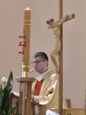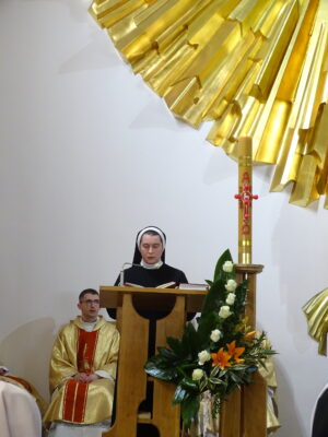 ks. Marcin Kałwik CSMA – radca generalny. W uroczystości wzięło udział wiele sióstr ze Zgromadzenia, które przybyły, aby wspólnie dziękować Bogu za dar powołania swoich współsióstr.