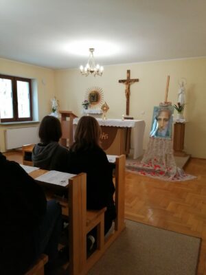 i słuchaniu Słowa Bożego, towarzyszyły im s. Monika Kubiszyn i s. Dorota Burczyk. Natomiast posługę sakramentalną sprawował ks. Emil Kurek, michalita. Pochylając się nad ewangeliczną perykopą o uzdrowieniu Bartymeusza, każda próbowała zdiagnozować swój osobisty, pogrążony w ciemności zakątek serca, a także określić wady duchowego wzroku, by potem w czasie Adoracji Najświętszego Sakramentu i Eucharystii prosić Jezusa o uzdrowienie tych miejsc. Czas był bardzo intensywny, ale łaski Pan nam nie szczędził. Dziękujemy