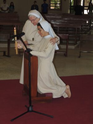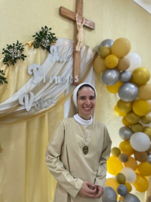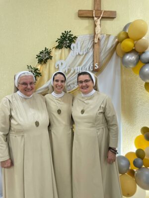 Eucharystii przewodniczył Wiceprowinciał Księży Michalitów, ksiądz Claudio Figueredo . Podczas homilii podkreślił ważność i sens ogołocenia naszego życia, zostawiania wszystkiego na wzór Jezusa Ukrzyżowanego. Nasze dwie siostry Fatima i Aida złożyły swoją profesję na ręce siostry delegatki generalnej Leoni Przybyło. Nad pięknem liturgii, dekoracji czuwała siostra Jolanata Grzywna, przy pomocy naszych sióstr junioratek