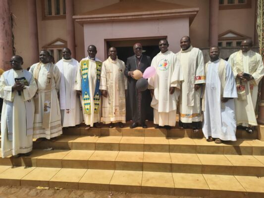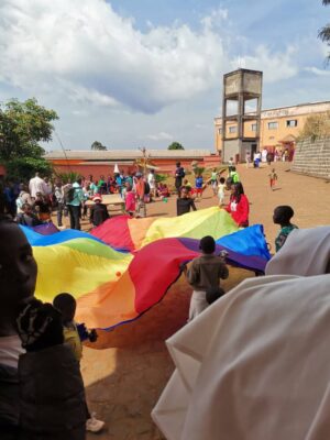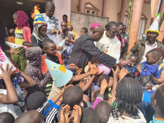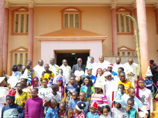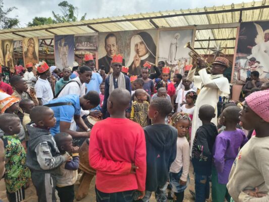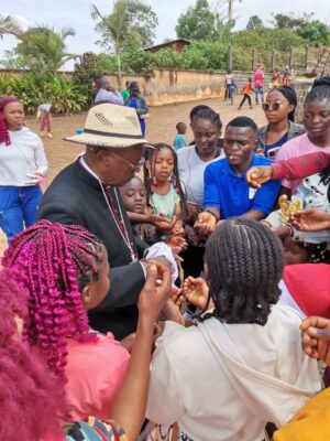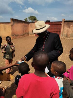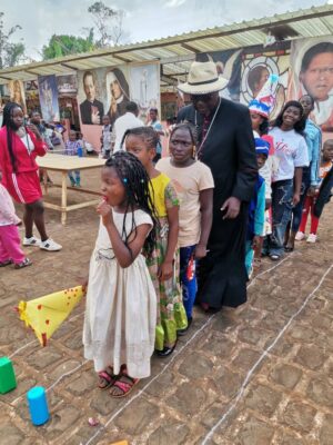 Jean Baptiste, który był głównym celebransem Eucharystii, ale także ksiądz biskup Paul Lonti z diecezji Bafoussam. Ksiądz biskup przybył z drobnymi upominkami dla dzieci oraz aktywnie uczestniczył we wspólnych zabawach.