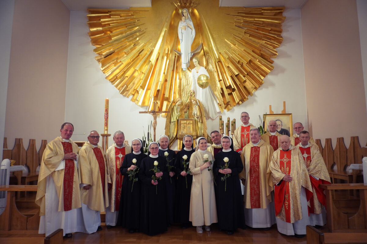 Dnia 28.07.2024r. w Miejscu Piastowym odbyły się uroczystości jubileuszowe z okazji 25-lecia i 50-lecia ślubów zakonnych. Uroczystej Eucharystii, w czasie której Siostry ponowiły swoją profesję, przewodniczył ks. Krzysztof Poświata, wikariusz generalny Księży Michalitów, obecni byli również Księża Michalici i Kapłani Goście. To wyjątkowe wydarzenie było nie tylko okazją do uhonorowania jubileuszów, ale także do wyrażenia wdzięczności za przykład życia oddanego Bogu i bliźnim, który siostry jubilatki dają swoim codziennym życiem. Niech Bóg obdarza je dalszymi łaskami, a Matka Boża nieustannie otacza swoją opieką.
